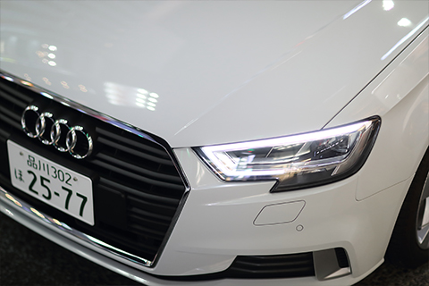 優雅なラインを基調としたフォルム。精悍な印象を漂わす幾何学的なフロント。彫りの深いラインなど。この作り込みはAudiの高い製造技術に支えられている。これら複雑な造形はショールームで確かめてもらいたいもののひとつ。さらに陽を浴びると立体感が強調されることまで計算されているのはAudiならではのこだわりである。
