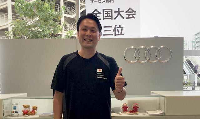 2017年9月にスペイン・セビリアで開催された「第13回 Audi Twin Cup ワールドチャンピオンシップ」。日本代表はテクノロジー部門、サービス部門において史上初の両部門同時3位入賞を果たしました。サービス部門で世界3位になったAudi大阪中央所属のサービスマネージャー松井義貴に、ワールドチャンピオンシップの感想など、あれこれ聞いてみました。