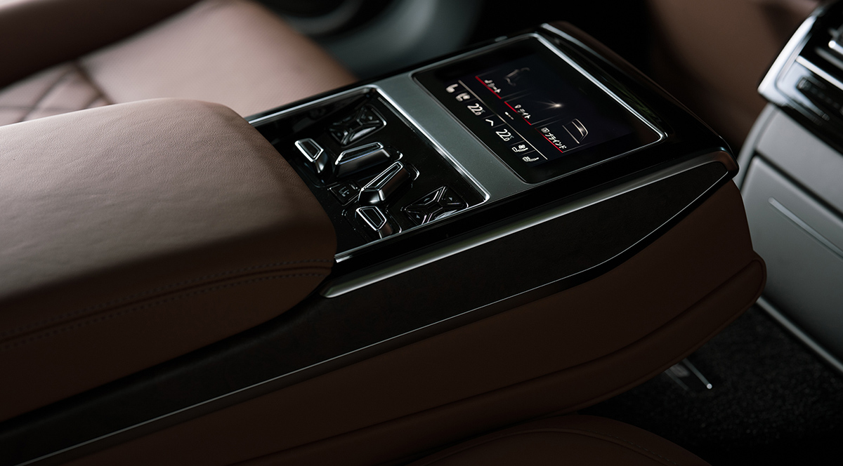 ゆったりとしたリヤシートでゲストをもてなすAudi A8 L、