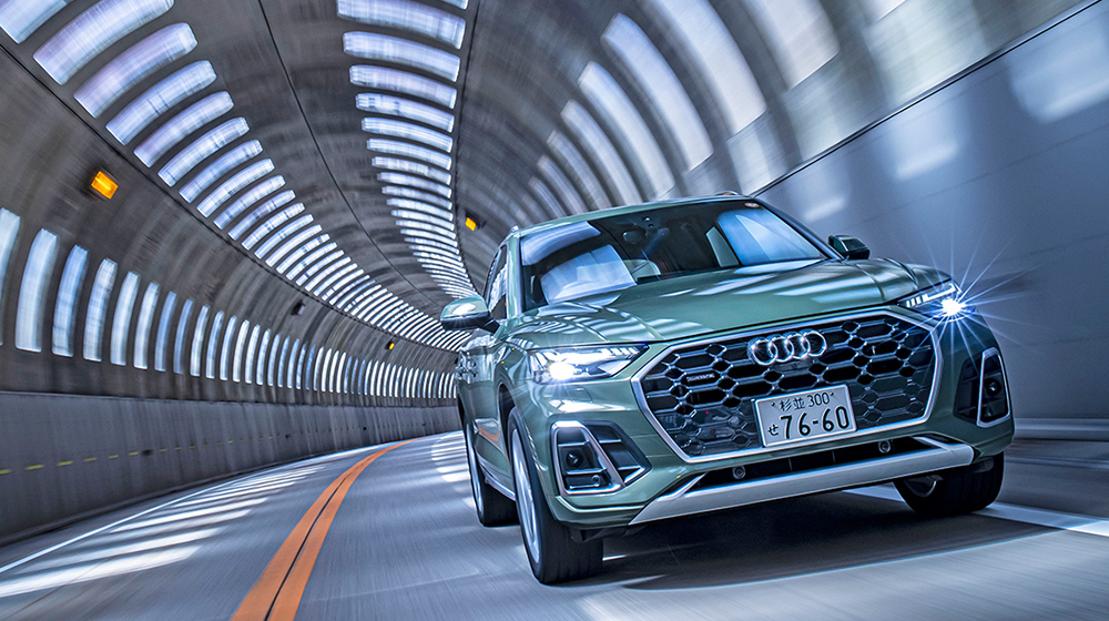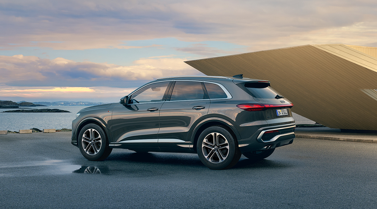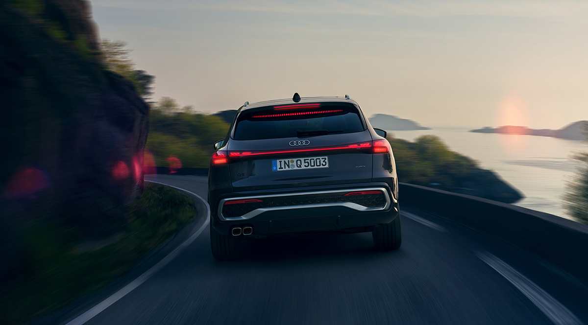 心揺さぶるダイナミックな佇まいに、あらゆるシーンに適応する実用性、 デジタルテクノロジーが一体化したインテリアを備えるAudi Q5。 Audi伝統のエンジン縦置きレイアウトが可能とするロングノーズ、鋭く傾斜したリヤウィンドウが シャープなシルエットを生み出し、引き締まった高いショルダーラインが存在感を強調します。