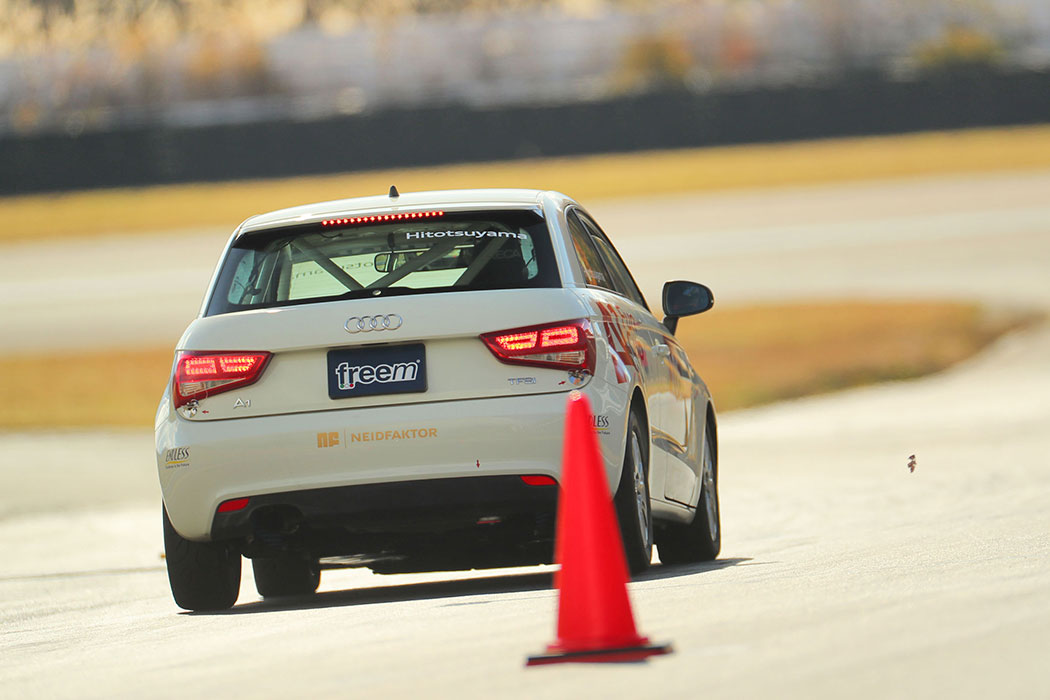 SUPER GTにAudi R8 LMSで参戦しているAudi Team Hitotsuyamaの協力のもと、今年も様々なレースシーンで活躍されたレーシングドライバーの富田竜一郎選手、細川慎弥選手、篠原拓朗選手を講師に迎え、全長約900mのショートコースで様々なサーキットプログラムを実施しました。