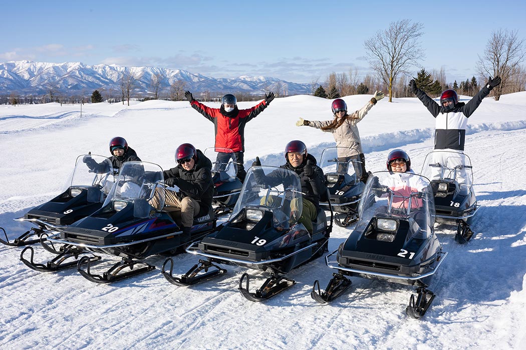 Audiからスノーモービルへ乗り換えていただき、北海道の広大な大地を巡るスノーモービルツアーも体験いただきました。インストラクターが初心者の方にも丁寧に指導し、晴れた冬空の下、グルーミングバーンを疾走する爽快感を味わっていただく北海道ならではの体験に、皆さまからもご好評をいただきました。