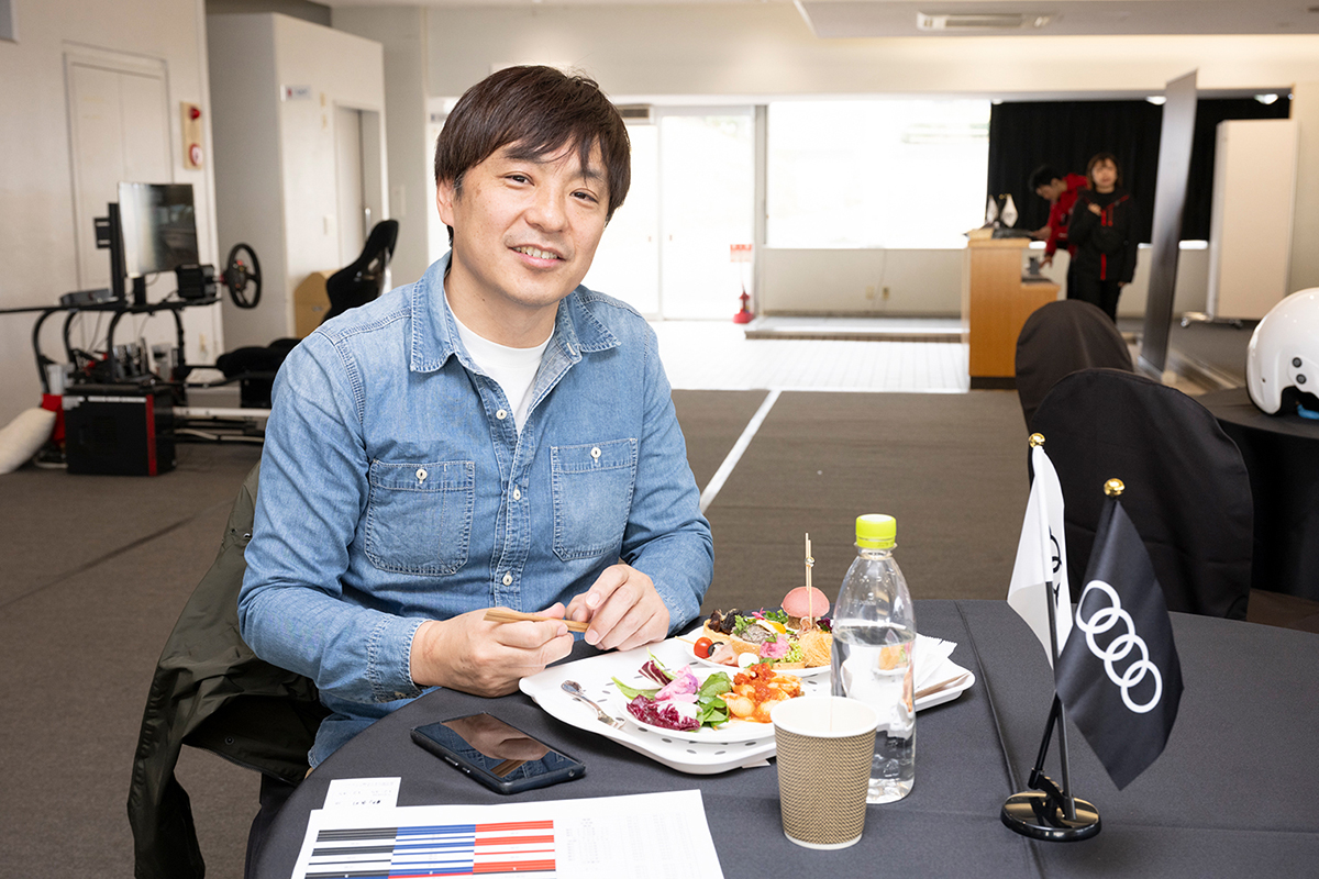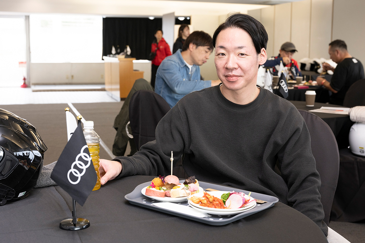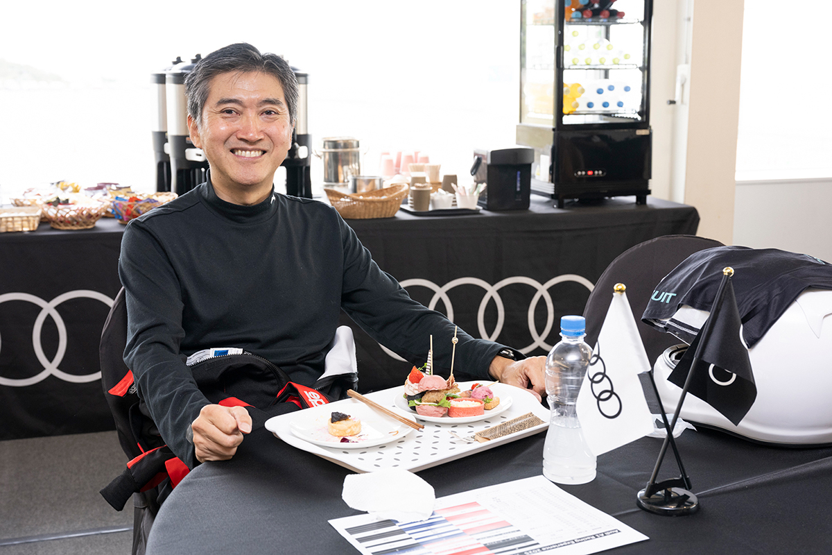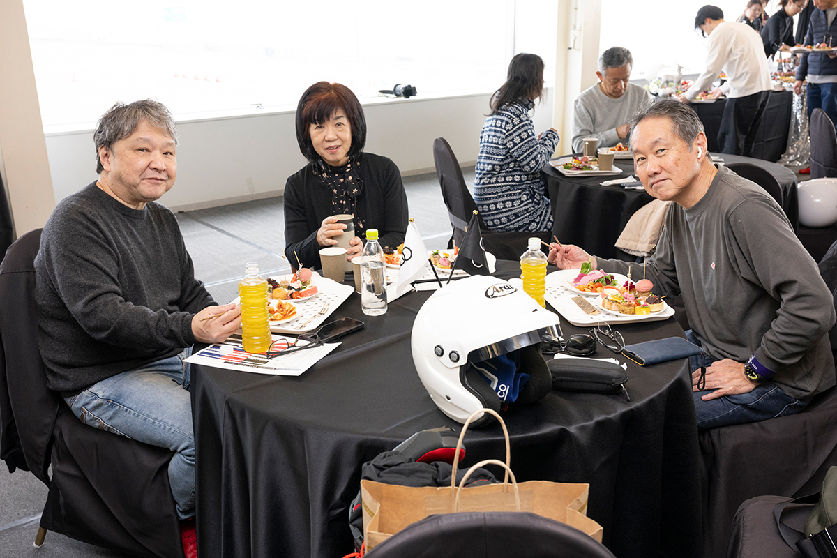 午前の走行を終えた後は、ランチタイムを設け、参加者同士やレーシングドライバーと走行の感想や気づきを共有するひとときになりました。ドライビングに集中した後のリラックスした時間が、午後の走行に向けた良い切り替えとなりました。