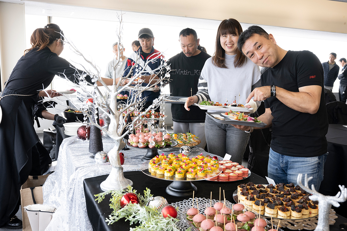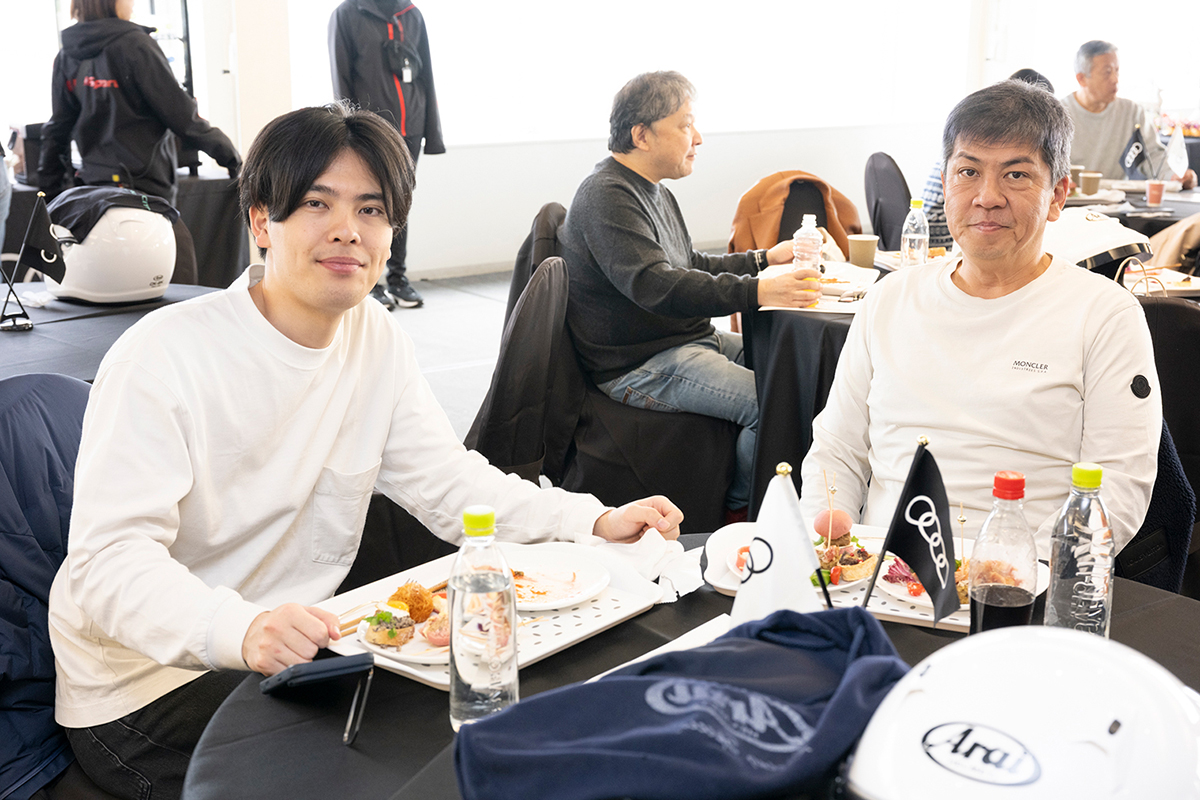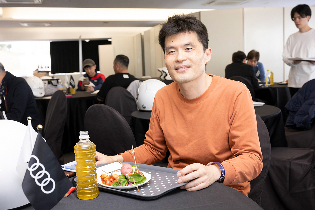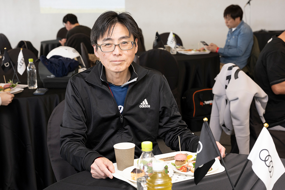 午前の走行を終えた後は、ランチタイムを設け、参加者同士やレーシングドライバーと走行の感想や気づきを共有するひとときになりました。ドライビングに集中した後のリラックスした時間が、午後の走行に向けた良い切り替えとなりました。