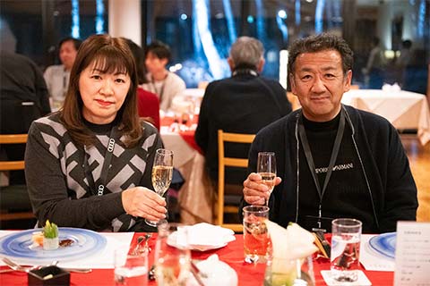 ディナーは、ライトアップされた白樺に囲まれたレストラン会場で信州・蓼科エリアの大自然を感じられる食材を使ったフレンチのコース料理をご用意しました。旬の味覚を長野県産のワインやウィスキーとともにお愉しみいただきました。自然とお客様同士の会話も弾み、1日目は終わりました。