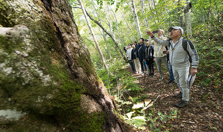 白樺やブナの林で森林浴をしながら気軽に散策できる、奥志賀高原を代表する奥志賀森林セラピーロードを専属ガイドがご案内いたします。