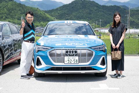 同じ「道の駅つる」で、ご友人とおふたりで参加の井上さんにも感想をうかがいました。「Audiは電気自動車の開発に熱心ですね。とても静かで走りもいいと思いました。ただし、僕たちは今回、Audi e-tron 55 Sportbackの走りを徹底的に楽しむつもりで、電費は一切気にしていません(笑)」 その言葉どおり、この時点での電費は8.1km/kWh。上位入賞は難しいかもしれませんが、Audi e-tron 55 Sportbackの走りをご堪能いただければ何よりです。