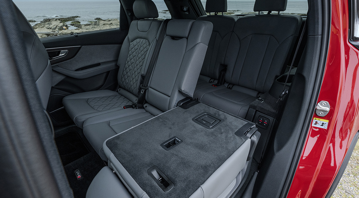Audi Q7の魅力はそのままに、よりスポーティに磨き上げたAudi SQ7。ダイナミックな走りに呼応し、パワフルなパフォーマンスを主張するエクステリアデザインが特徴です。専用シングルフレームグリルやフロントバンパーが精悍な表情を創出。フロントは象徴的な八角形グリルにシルバーのL字型インサート、大開口エアインテークが見事に調和します。足元には力強くアグレッシブな走りを象徴する21インチアルミホイールを装備。力強いワイドスタンスのリヤビューは、左右4本出しのテールパイプと進化したリヤディフューザーが存在感と卓越したパフォーマンスを印象づけます。